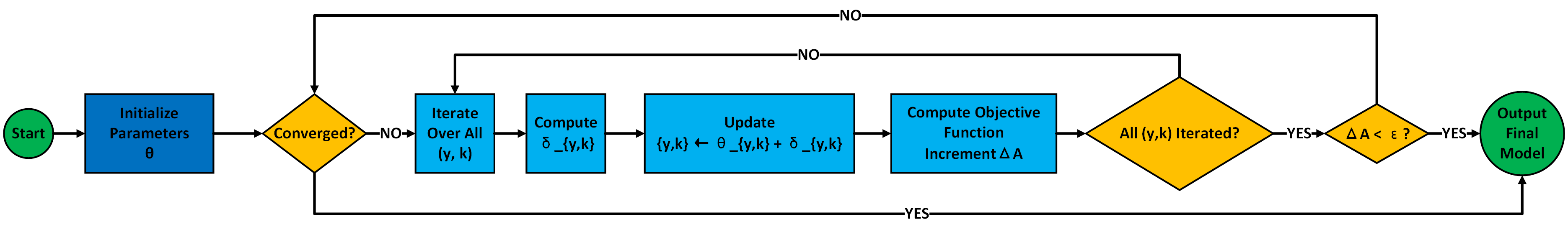 This equation can be solved numerically (e.g., with the Gauss–Newton method) dimension by dimension to obtain \(\delta_{y,k}\) and complete iterative updates. The algorithm flow is as follows: