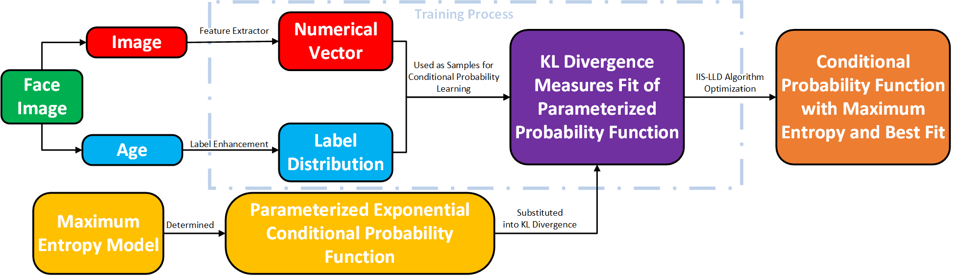 This article offers a thorough analysis of Xin Geng et al.’s paper Facial Age Estimation by Learning from Label Distributions (2011), systematically organizing its research framework and deriving the key mathematical models in detail. The analysis clarifies the definition of label distributions, examines the label distribution learning model that uses KL divergence as its objective, derives the conditional probability function based on the maximum entropy model along with its optimization algorithm IIS-LLD, and finally summarizes the paper’s experimental design and results.